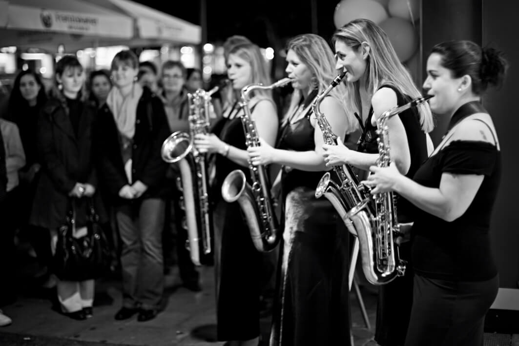Four Saxess ist ein sprühendes Saxophonquartett, dessen Repertoire sich von swingenden Jazzarrangements über groovige Funknummern bis hin zu tanzbaren Rock’n Roll Songs erstreckt.